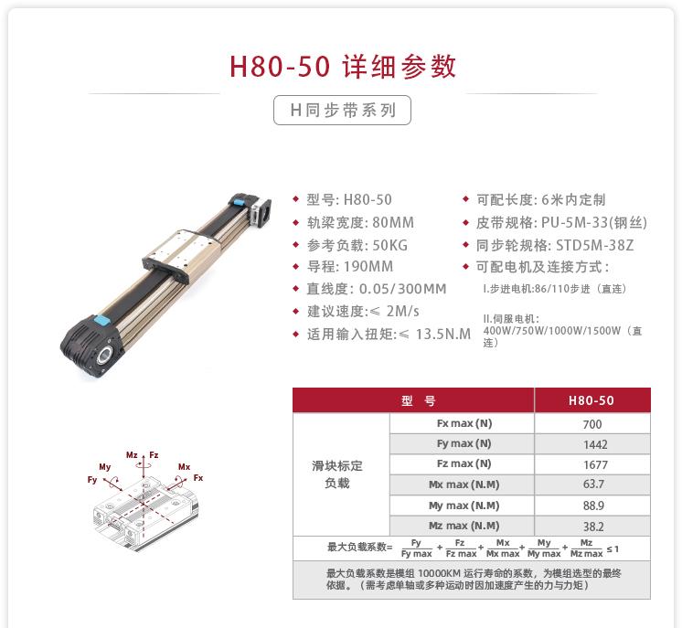 1.电机直连配置:同步带模组H80-50+电机直连笼+联轴器+压脚套装+光电开关